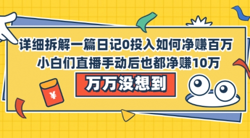 详细拆解一篇日记0投入如何净赚百万,小白们直接手动后也都净赚10万